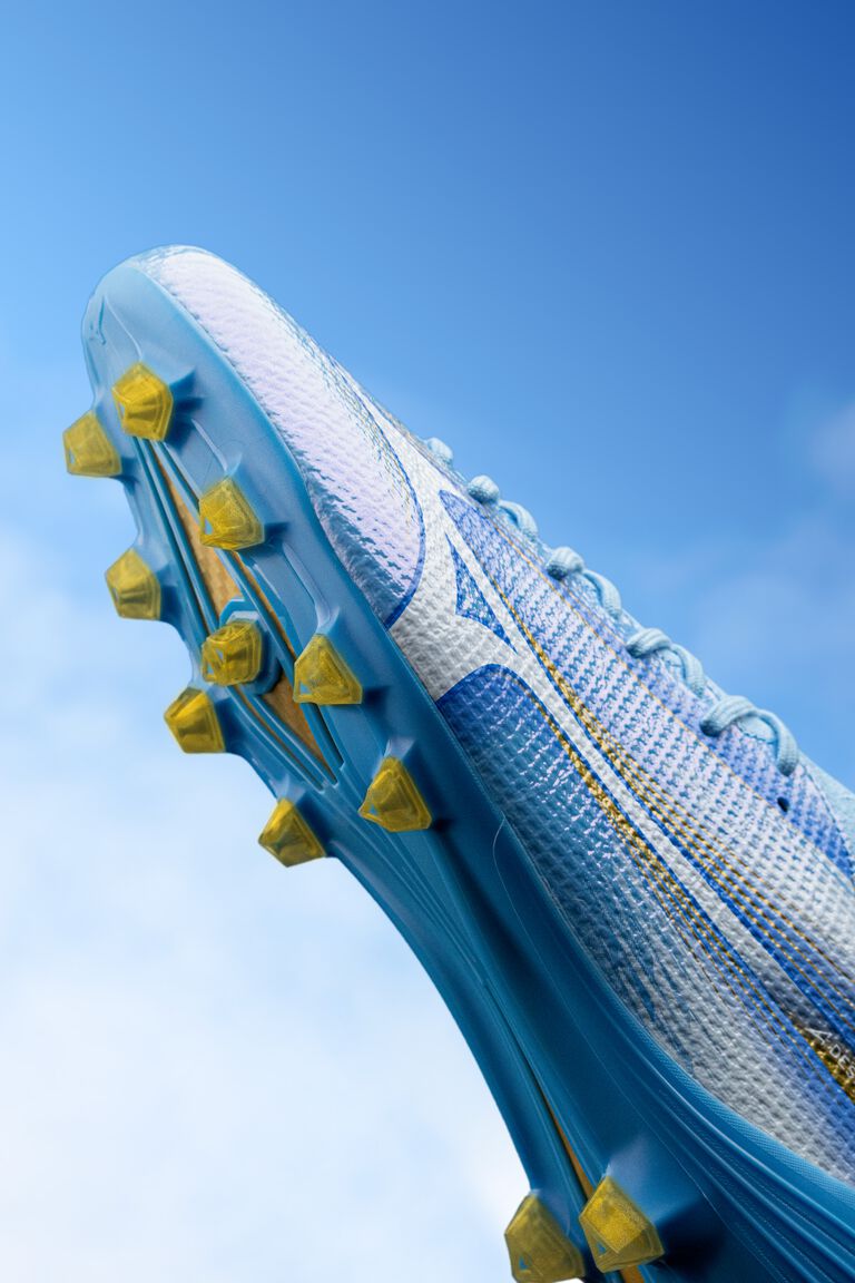 This boot gives top players the speed advantage they need to dominate the game. Designed and made in Japan, the boot has an outsole with triangular studs for vertical speed, KaRVO material for powerful propulsion, and MIZUNO ENERZY for superior heel cushioning and energy return. The insole with a MIZUNO ENERZY xp SOCKLINER provides softness and energy return at a light weight. Featuring the Engineered Fit Last NEO and a revamped knit upper, the boot delivers an unparalleled fit.